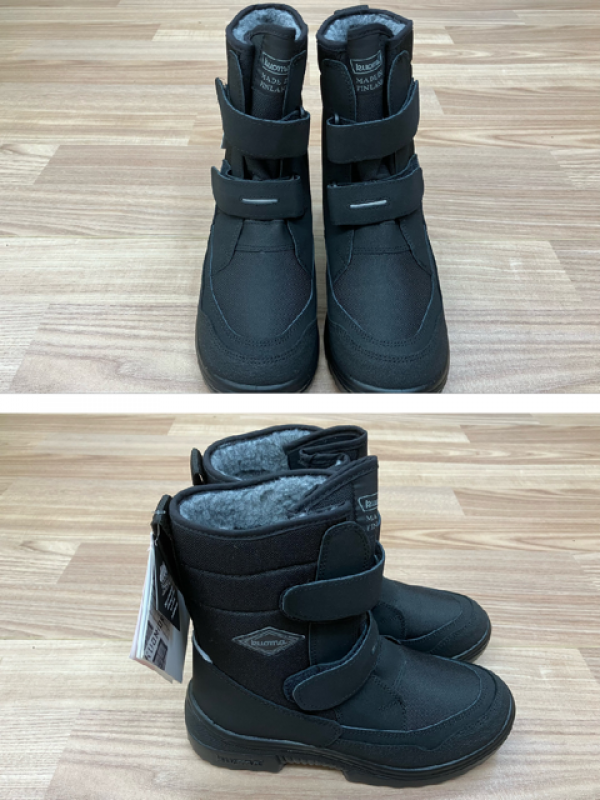 前回に続きフィンランド生まれのKUOMAの好評継続品VAELTAJA(ヴァエルタヤ)1259 ブラック のご案内です。膝下までしっかりと覆い、寒い日にも心強いデザインで、ロープ風の紐やブランドタグがアクセントになり、シンプルながらデザイン性のある一足です。ウォータープルーフで軽量、保温性に優れ、履き口にはフィット感を調整できるアジャスターコード付きで、雨や雪の侵入を防ぎ、冷たい風からも足を守ります。北海道のドカ雪にも安心設計ですね。価格は30,000円(税抜)です。オーダーメイドインソールとの相性も抜群です(^^)/ -